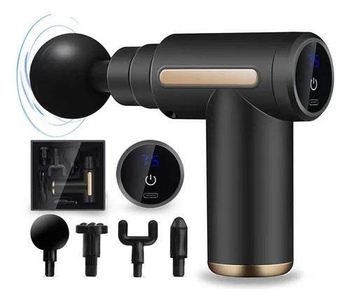 Despídete del dolor y la tensión con la Pistola Masajeadora de Percusión, diseñada para brindar un masaje profundo y profesional en casa, gimnasio u oficina.